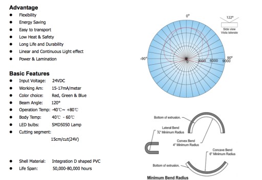 - Neon led wykonany jest m.in z polimerów (nie silikonu ! ) materiału odpornego na słoną wodę, promienie UV oraz nie sztywniejącego pod wpływem niskich temperatur.
