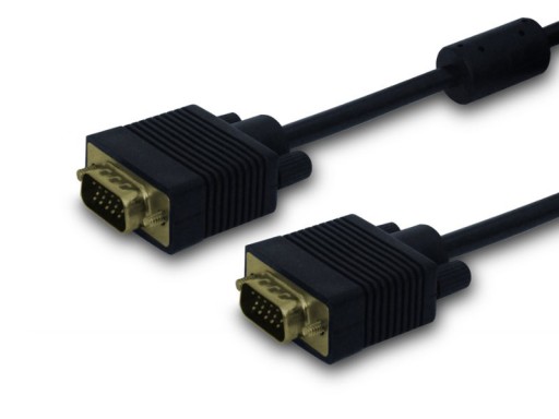 SAVIO CL-50 Kabel VGA M - VGA M, 2 ferryty, 5m- Ekranowany +2 ferryty - Niklowany- Działa w dwie strony. Przykładowe zastosowanie:Przekazanie obrazu z komputera, konsoli, laptopa, tunera, DVBT na monitor lub TV.