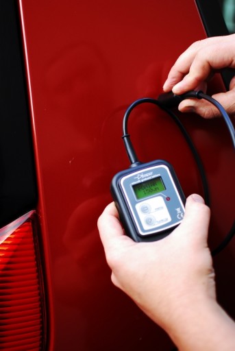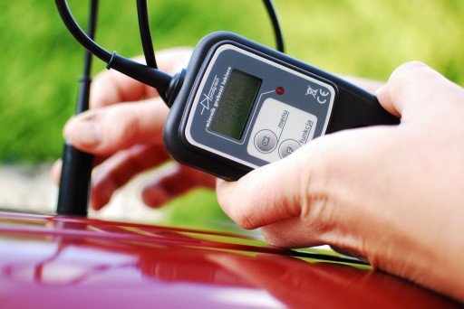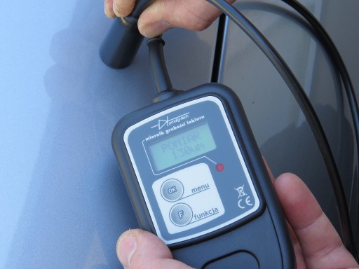 Miernik podpowiada prawdopodobieństwo wystąpienia szpachli bądź grubej warstwy lakieru.