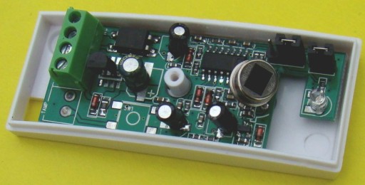Czujnik jest zasilany 12V DC. Posiada wyjście przekaźnika SSR 100mA.