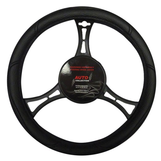 Pokrowiec na kierownice wykonany z eko - skóry, przeznaczony do samochodów o średnicy zewnętrznej kierownicy od 37 do 39 cm