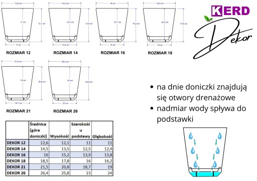 na POZOSTAŁYCH AUKCJACH Doniczki z serii Dekor dostępne są w 7 rozmiarach (średnica mierzona na górze doniczki):