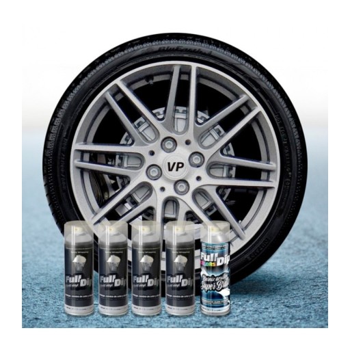 Przygotowaliśmy dla Państwa kompletny zestaw do zmiany koloru felg na Hypersilver metalic połysk. 4 puszki, po 400 ml każda, zawierają wysokiej jakości folię natryskową. Do jej nałożenia wystarczy tylko dokładnie umyć powierzchnię i odtłuścić ją. Zaleca się nałożenie 6 warstw gumy, każda w odstępie 10-15 minut (zależnie od temperatury powietrza). Całkowite wyschnięcie nabranie odporności i elastyczności następuje po 24H. Dodatkowa puszka, zawiera specjalny półelastyczny lakier akrylowy SuperBrillo, który jest odpowiedzialny za efekt połysku. W zupełności wystarczą 2 cienkie warstwy położone nie wcześniej jak dobę po aplikacji folii natryskowej.
