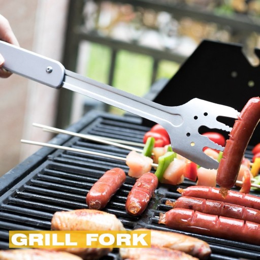 - INNOWACYJNY i PRZENOŚNY: jedno narzędzie łączy w sobie 6 funkcji, takich jak widelec, szpachelka, nóż, szczypce, otwieracz do butelek i korkociąg do wina. Można użyć osobno lub złożyć. W porównaniu z tradycyjnym ciężkim zestawem narzędzi do grilla, ten jest przenośny, umieszczony w kieszeni i łatwy do noszenia!