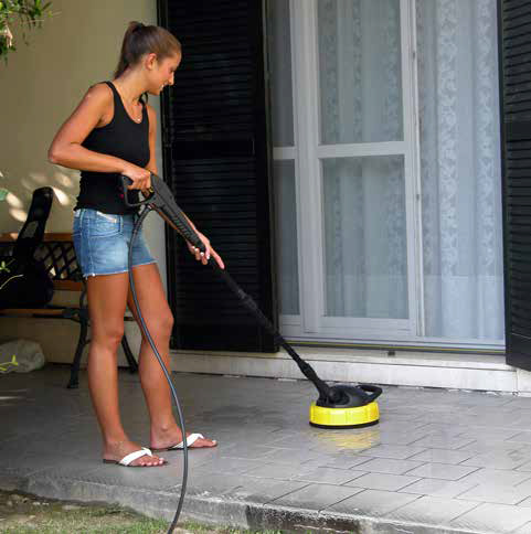 - Patio cleaner ZE ZBIORNIKIEM NA ŚRODEK CHEMICZNY - Przeznaczony do czyszczenia płaskich powierzchni bez rozprysków, np. patio, tarasów i ścian z drewna jak i z kamienia. Obracająca się belka z dwiema dyszami zwiększa efekt mycia REWELACYJNE ROZWIĄZANIE DO MYCIA KOSTKI BRUKOWEJ