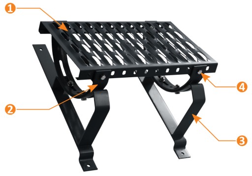 Kompletna ława kominiarska składa się ze wspornika do blachodachówki (1), kołyski ławy kominiarskiej (2) oraz platformy ławy kominiarskiej (4), natomiast kompletny stopień kominiarski składa się ze wspornika do blachodachówki (1) i stopnia kominiarskiego.