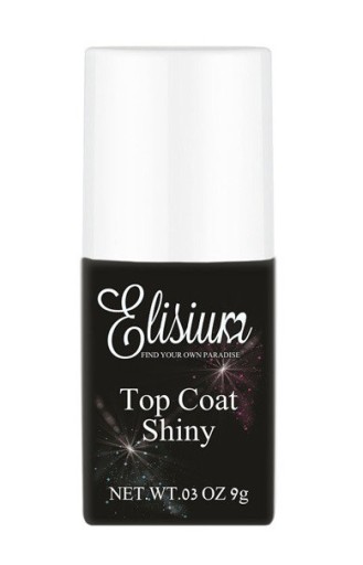 Elisium Top Coat Shiny bezbarwny top utwardzalny w lampie UV/LED z innowacyjną formułą nie pozostawia lepkiej warstwy dyspersyjnej, dzięki czemu w szybki i prosty sposób wykończy hybrydowy manicure. Dzięki swojej odporności zabezpieczy kolor przed blaknięciem i nada perfekcyjnego blasku.