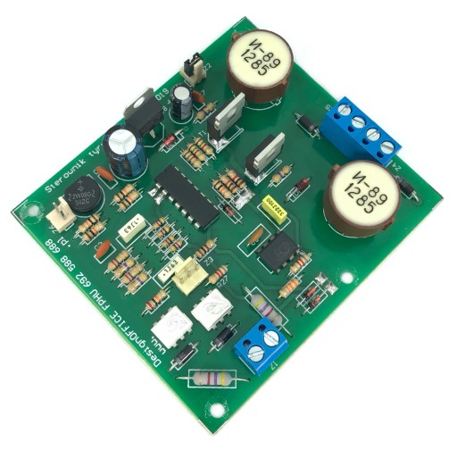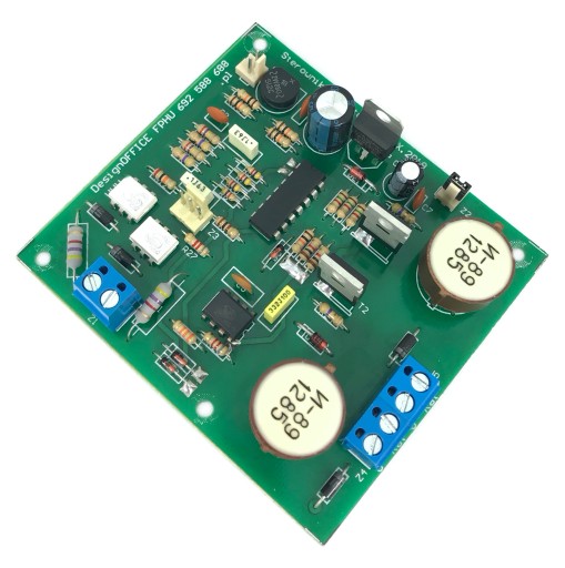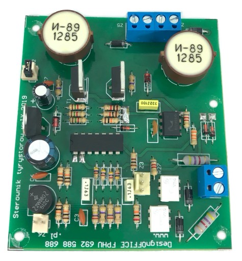 Regulator tyrystorowy (układ sterujący - wyzwalający tyrystory). Umożliwia płynną regulację mocy /prądu przy użyciu tyrystorowego prostownika sterowanego (czyli dwie diody dwa tyrystory).