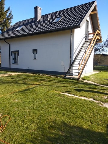Schody na 15 stopni z podestem są odpowiednie na wysokość 280-330cm oczywiście stopni może być więcej lub mniej w zależności od wysokości podestu