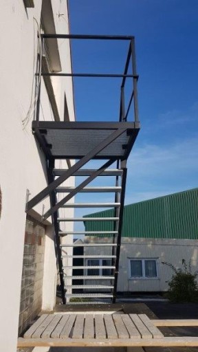 Oferta/cena dotyczy schodów zewnętrznych z podestem/balkonem i barierką