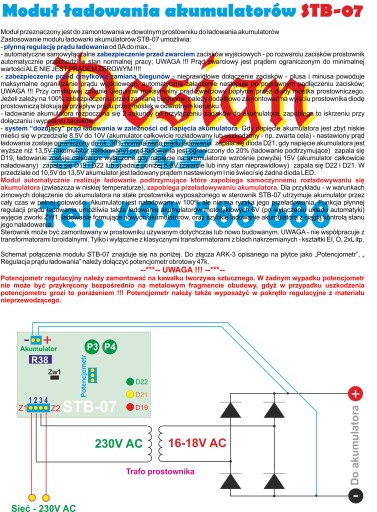 Sterownik może być zamontowany w prostowniku używanym dotychczas lub nowo budowanym, ale z uwagi na fakt regulacji prądu po stronie pierwotnej, układ NIE MOŻE współpracować z transformatorami toroidalnymi (okrągłymi), gdyż takie transformatory z tym układem mocno się nagrzewają. Układ może współpracować z dowolnym KLASYCZNYM transformatorem z blach pakietowych, bądź z rdzeniem zwijanym, ale nie z TOROIDEM !!!