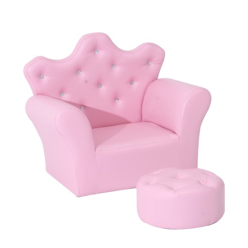 HOMCOM Fotelik dla dziecka sofa z kryształowymi guzikami różowa