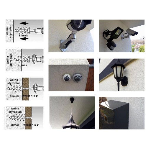 Wkręty ślimakowe stosujemy do mocowania w elewacji styropianowej lub wełnianej takich elementów jak: