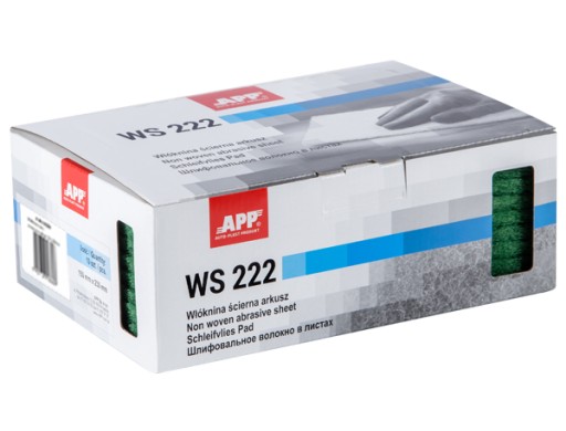 APP WS/WSR 222 to włóknina ścierna o otwartej trójwymiarowej strukturze sieci nietkanych nylonowych włókien nasączonych żywicą, z naniesionym natryskowo wysokiej jakości materiałem ściernym.