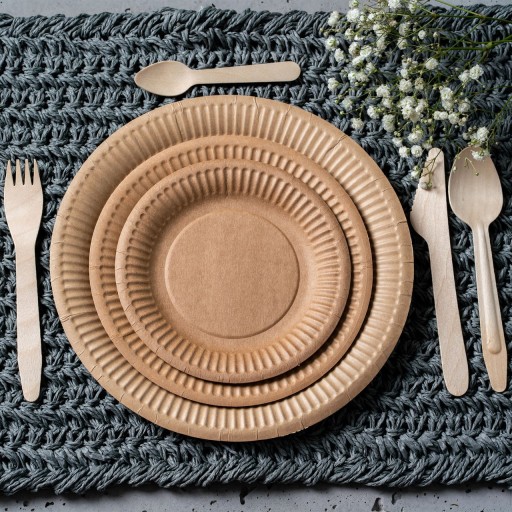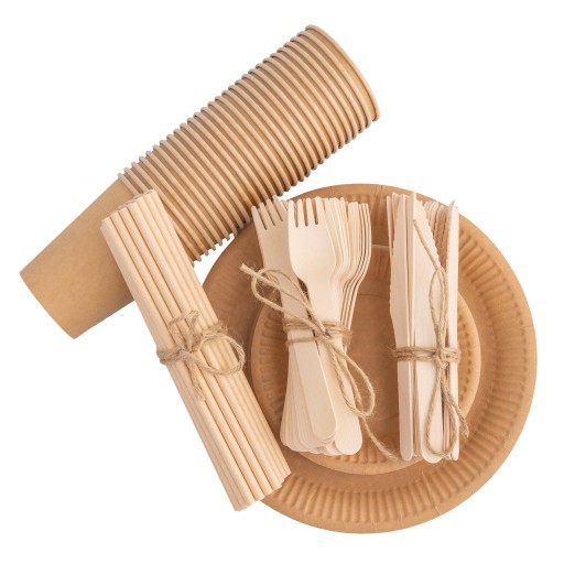 Экологически чистые бумажные тарелки и деревянные столовые приборы