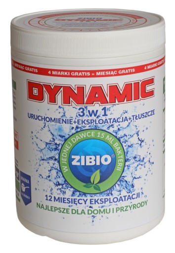ZIBIO DYNAMIC 3w1 do szamb i przydomowych oczyszczalni ścieków to bardzo wydajny preparat biologiczny. Zawiera unikalny kompleks mikroorganizmów i enzymów, który przyspiesza proces rozkładu i upłynniania ścieków.