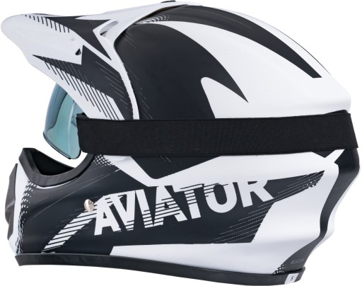 Dopinane gogle na klips w zestawie, kask posiada specjalne mocowanie które trzymają gogle sztywno.