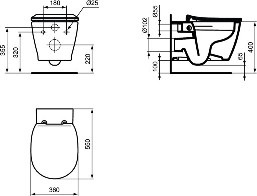Otwarty system spłukiwania miski tz. bez rantu, zapewniający łatwiejsze utrzymanie higieny i uniemożliwający rozwój bakterii. Przeznaczona do obiektów użyteczności publicznej o wysokich wymaganiach dot. czystości (np. szpitale). Do skompletowania z deską sedesową z duroplastu z pokrywą lub bez pokrywy.