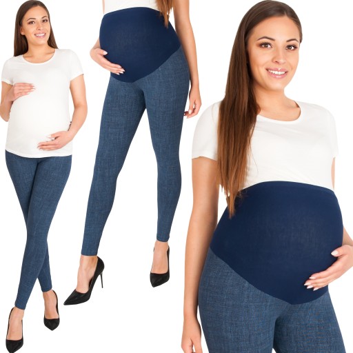 - Posiadają gładki, granatowy panel ciążowy, który zakrywa cały brzuszek.