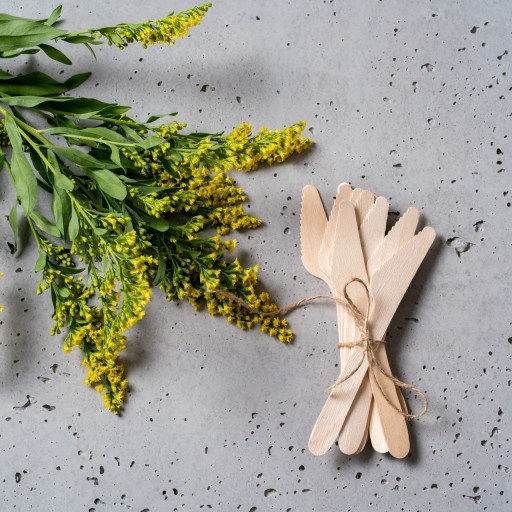 Sztućce drewniane wykonane są z naturalnie jasnego drzewa brzozy. W przeciwieństwie do innych gatunków nie wymaga bielenia. Są w 100% biodegradowalne.