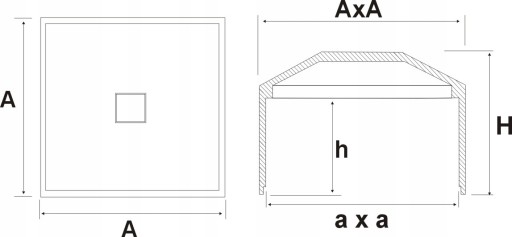 - Wymiar zewnętrzny zaślepki (AxA): 65x65mm