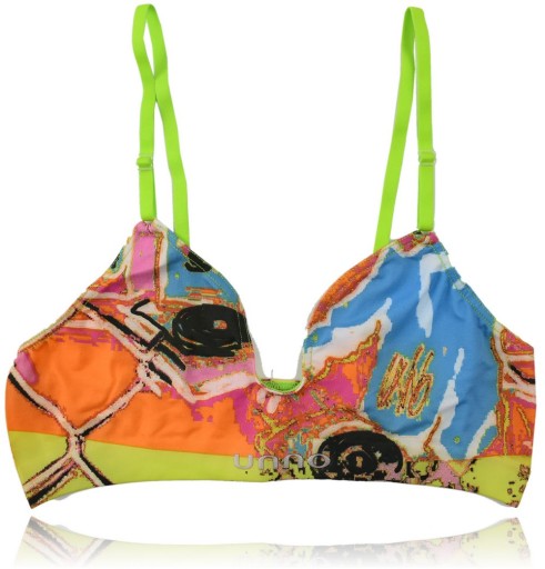 - stanik sportowy, miękki, bez żadnych usztywnień, w energetycznym mixie kolorów z przewagą nenowych,