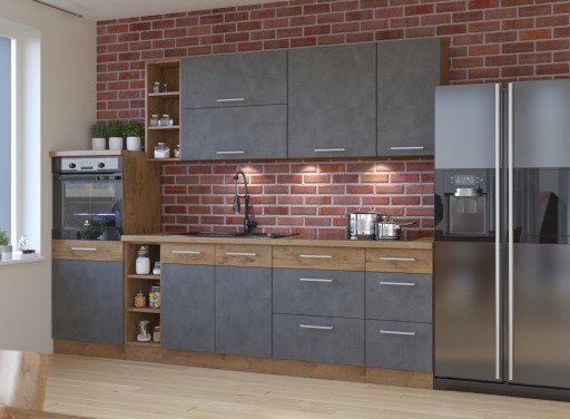 Fronty w kolorze MATERA (dekor szczotkowane żeliwo) + DĄB LANCELOT