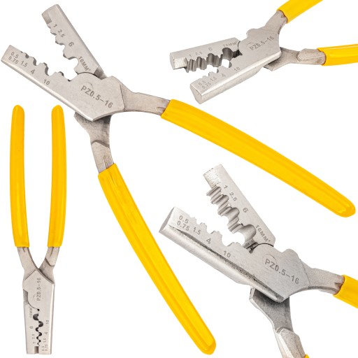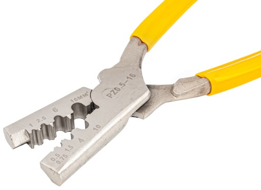 Profesjonalne szczypce do zaciskania tulejek kablowych. Trapezowy profil zagniatający zapewnia bezpieczne połączenie między tulejką i przewodem.