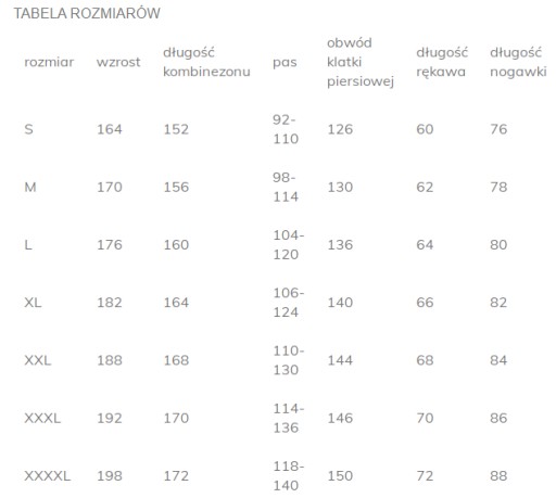 Proszę wpisać w wiadomości do sprzedającego kolor kombinezonu.
