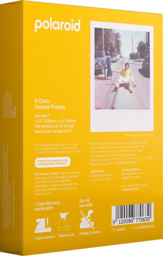 Wkład do aparatu Polaroid serii I-Type umożliwia wykonanie 8 fotografii kolorowych z białymi ramkami, Obrazem cieszysz się już po 15 minutach.
