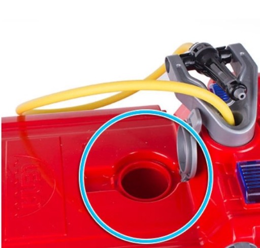 Pojazd wyposażony jest w zbiornik na wodę, którą wlewamy od góry pojazdu. Następnie z boku umieszczona została ręczna przekładnia pompki - dzięki ruchom w przód i w tył z armatki wodnej będzie lać się woda! Podczas upalnych dni zabawa murowana!