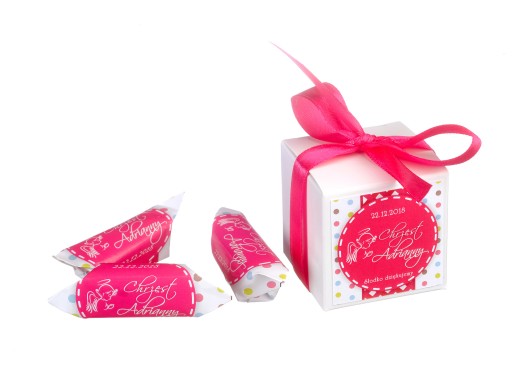 jako JEDYNI w tej cenie dajemy 3 krówki w etykiecie takiej jak grafika na pudełku oraz podziękowaniem przesłanym przez Ciebie