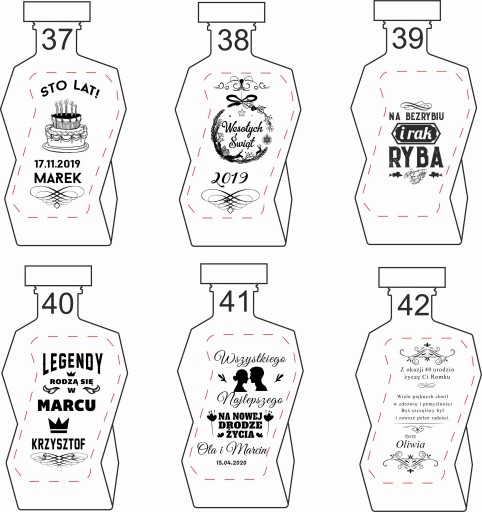 - numer projektu na karafkę oraz dane do personalizacji: imię lub rok (w zależności od projektu). POZOSTAŁE ELEMENTY PROJEKTU NIE PODLEGAJĄ PERSONALIZACJI.
