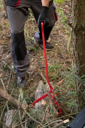 Dzięki specyficznej konstrukcji samoczynnie zaciskają się na przenoszonym pniu, wbijając ostre szczęki w przenoszony materiał. Tym samym stabilizują pień.