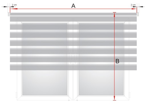 B: to wysokość całej ramy okna. W gotowej roletce materiał będzie odpowiednio dłuższy aby nie odkleił się od wałka nawojowego.