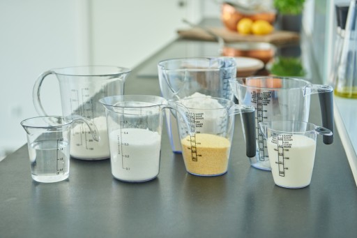 Przezroczysty dzbanek z miarką, dwustronnym nadrukiem skali z przodu (wewnątrz) i z boku do łatwego czytania. Skala w 3. wielkościach, również (decy)litr, dla cukru i mąki w pięciu językach na wszystkich rozmiarach. Otwór do powieszenia i bardzo duża wylewka dla łatwego przelewania.