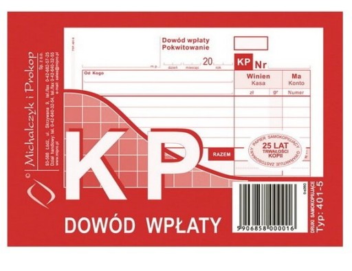 KP Dowód wpłaty 401-5 Michalczyk i Prokop