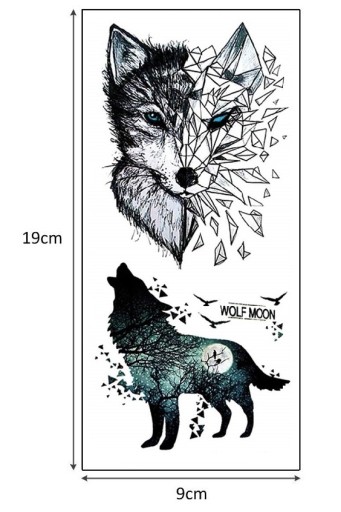 TATUAŻ TYMCZASOWY ZMYWALNY WILK KSIĘŻYC GEOMETRYCZNY