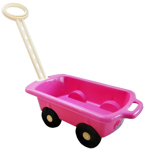 - Wózek z rączką, który znajdzie zastosowanie w zabawach w domu, ogrodzie, plaży czy piaskownicy