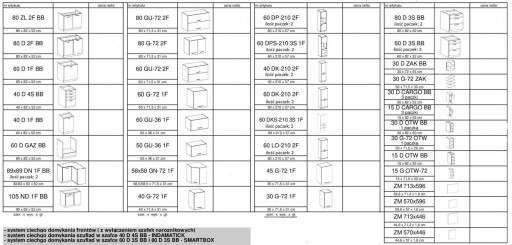 Masz pomysł na własną kuchnię ??? Poniżej tabela z szafkami do wyboru :