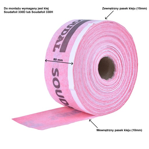 - Przeznaczona do mocowania przy pomocy kleju do folii Soudafoil 330D - co jest szczególnie przydatne w miejscach, gdzie nie można odpowiednio wyrównać podłoża (na przykład w zabytkowych budynkach) lub przy montażu okien na długie kotwy