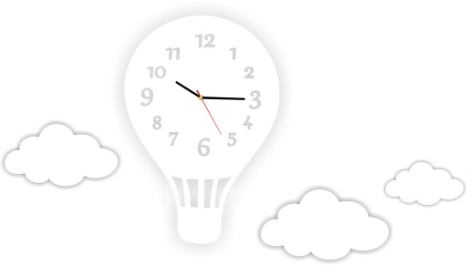 Montaż zegara jest bardzo prosty, wystarczy zawiesić balon na haczyku, a pozostałe trzy chmurki mocowane są na taśmę piankową (chmurki są już nią podklejone).