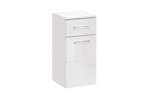 - Biała szafka niska łazienkowa z szufladą i drzwiami