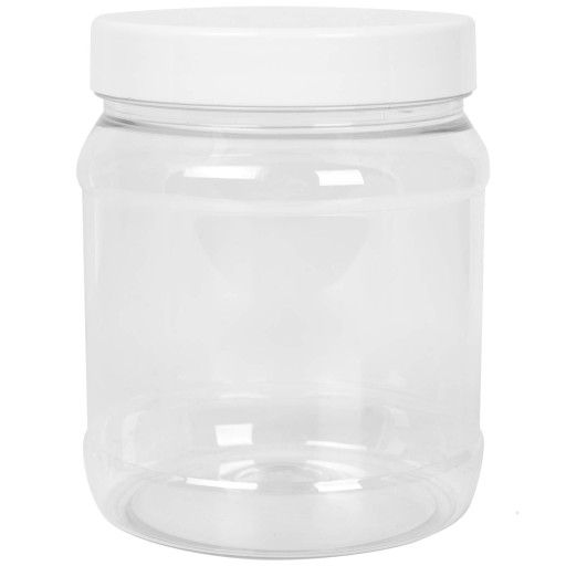 Wysokiej jakości słoiczek wykonany z tworzywa PET o pojemności 1000 ml. Może być wykorzystany do produktów spożywczych, kosmetycznych lub innych dowolnych celów. Pokrywka w kolorze białym bez wkładki, posiada uszczelnienie kołnierzowe.