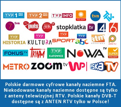 - Polaryzacja: UHF - pozioma VHF - pozioma/pionowa