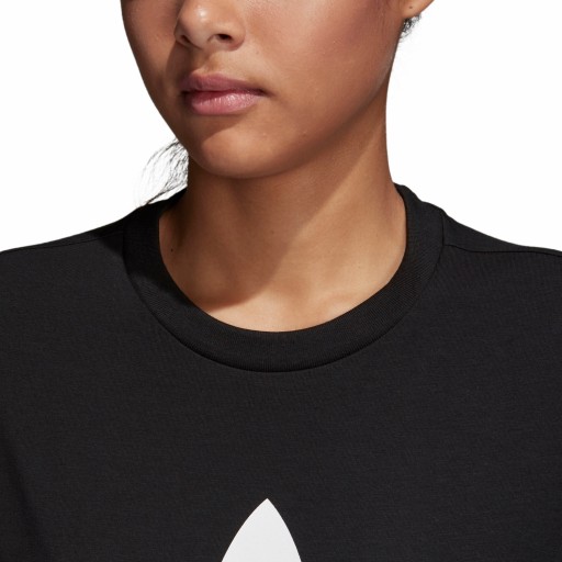 Niezbędny element sportowego stroju w nowoczesnym stylu. Ten t-shirt dla kobiet prezentuje niezobowiązujący design na co dzień, który zwraca uwagę swoim inspirowanym sportem lookiem. Nowoczesna koszulka z miękkiej bawełny z domieszką streczu prezentuje dumny styl adidas przy pomocy śmiałego logo Trefoil na przodzie.