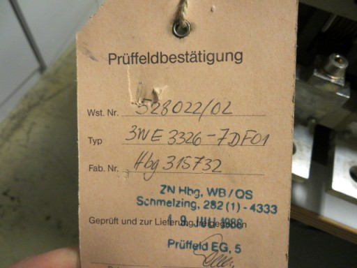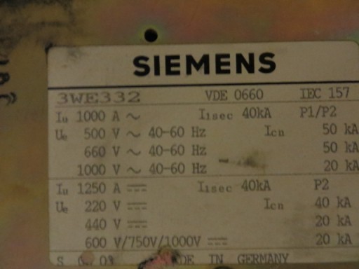 Wyłącznik (rozłącznik) silnikowy główny Siemens 3WE3326-7DF01, 40kA.