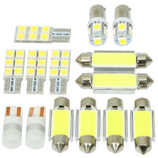 Prezentowane żarówki stanowią komplet oświetlenia w najbogatszej wersji wyposażenia we wnętrzu VW Golf 5. Jeśli Twoja wersja różni się ilością żarówek, to kupując ten zestaw otrzymasz 2-3 żarówki zapasowe.