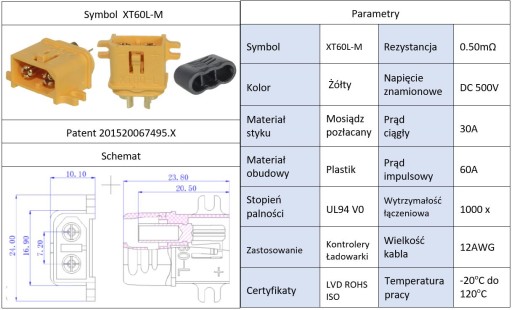 Złącze męskie z osłonkami 30/60A Amass XT60L-M