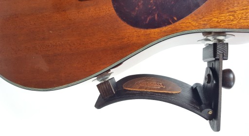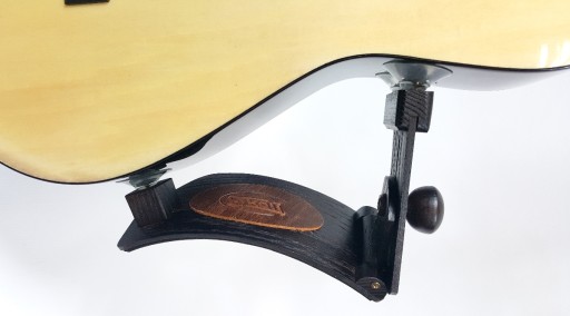 Łączy się go z gitarą za pomocą trzech przyssawek gumowych. Posiada regulację wysokości oraz kąta ustawienia gitary, co pozwala dopasować go idealnie do sylwetki każdego, nawet najbardziej wymagającego gitarzysty. Dzięki temu ustawiasz odpowiednio gitarę podczas, gdy Twoje stopy pozostają ułożone płasko na podłodze uniemożliwiając garbienie się. To poprawia ogólną postawę, redukując skręcenie i garbienie tułowia towarzyszące użyciu podnóżka.